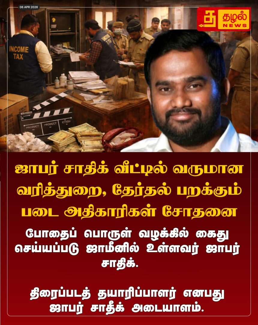 ஜாபர் சாதிக் வீட்டில் வருமான வரித்துறை மற்றும் தேர்தல் பறக்கும் படை அதிரடி சோதனை! போதைப்பொருள் வழக்கில் ஜாமீனில் உள்ள நிலையில் மீண்டும் சிக்கியுள்ளார்.