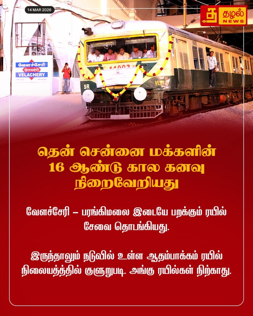 வேளச்சேரி – பரங்கிமலை இடையே பறக்கும் ரயில் சேவை தொடங்கியது.